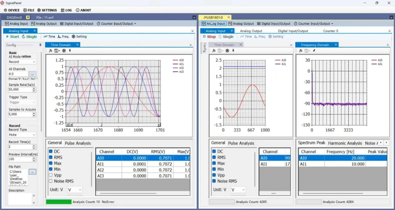 简仪SignalPanel 是由简仪科技开发的设备控制和数据可视化软件,可连接简仪科技的数据采集系列硬件设备,支持同时使用多个设备的多个功能,对采集的数据进行分析测量和展示,并支持灵活的界面布局。
